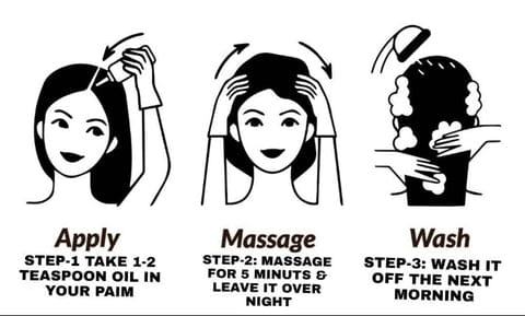 - Massage: Apply the oil to your scalp and hair, massaging gently in circular motions for 10-15 minutes.